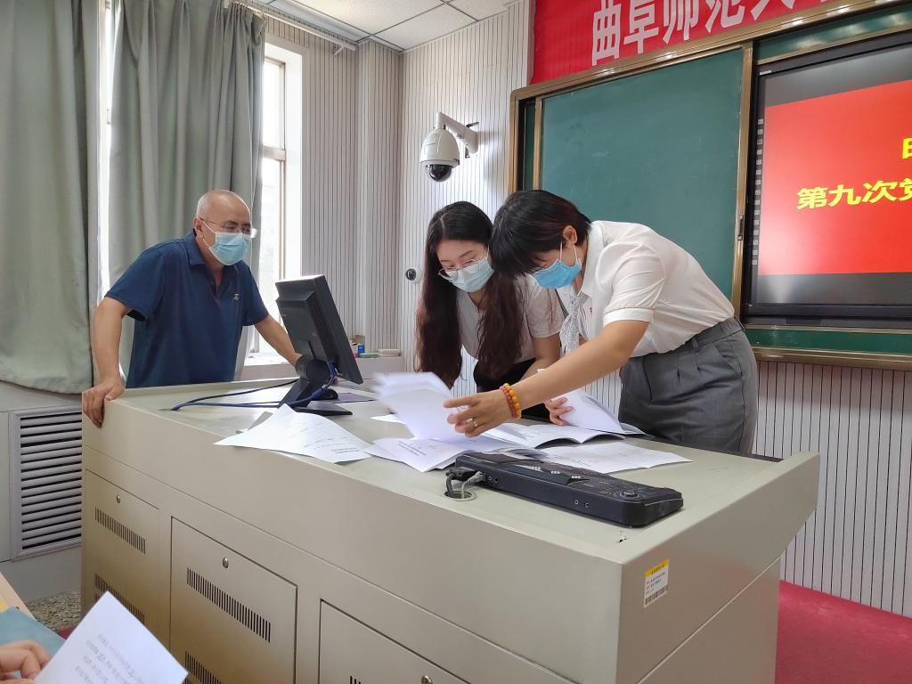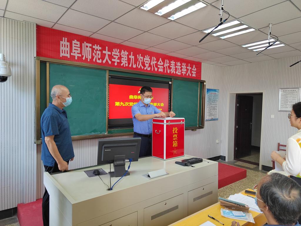 第九次党代会代表选举大会。井维华教授被选举为监票员,教职工党支部书记吕邈和研究生党支部书记罗元任记票员,党委副书记朱伟卫主持会议。