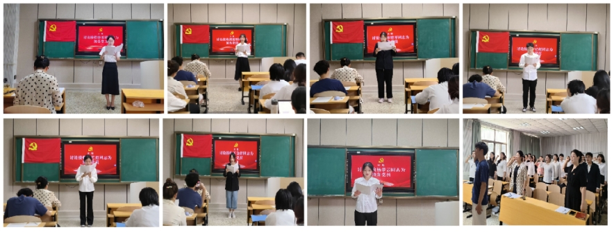 大会议程第二项,由骆雨萌等7名同志宣读入党志愿书,并依次进行自我总结,详细汇报个人在思想、学习、生活和工作等各方面的情况,并向党支部提出申请。本科生党支部书记朱伟卫同志介绍了骆雨萌等7名发展对象的政治审查情况。经过与会党员充分讨论,对发展对象是否具备预备党员条件,采用无记名投票的方式进行表决,一致通过骆雨萌等7名同志成为预备党员,随后以上同志进行了集体宣誓。