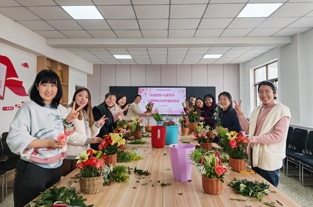 党委副书记朱伟卫向女教职工致以节日问候,回顾学院在心理健康教育领域的特色成果,并强调“以美育人、以文化人”对师生成长的深远意义。她指出,在迎接校庆的节点上,女教师群体既是育人事业的“耕耘者”,也是学校精神的“传承者”,期待大家以花语传递教育情怀,为校庆增添人文温度。