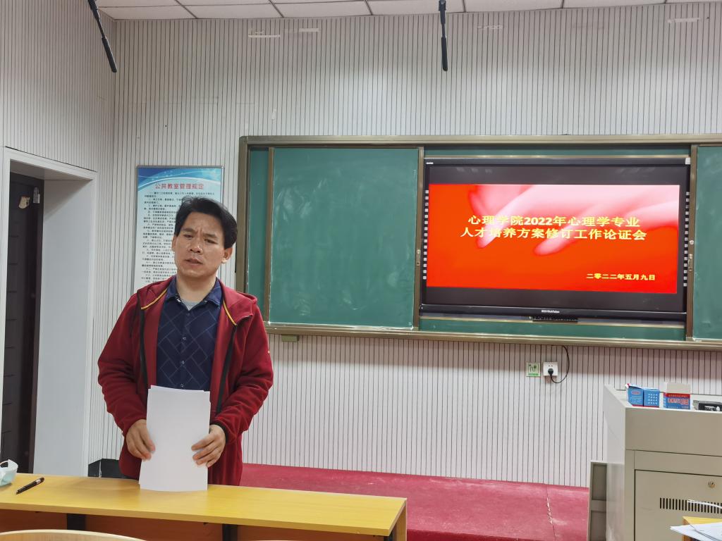 李海青副院长详细介绍了2022年心理学(师范)专业人才培养方案的初稿,阐释了师范专业认证导向下学院人才培养目标的制定,并请李寿欣院长和王云强副院长对2022年心理学(师范)专业人才培养方案提出宝贵的意见和建议。