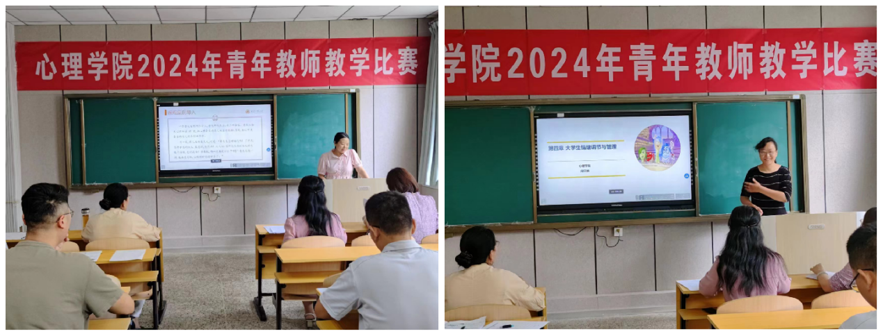 活动伊始,李海青副院长强调本次比赛要以加强青年教师教学基本功和能力训练为着力点,培养青年教师高尚的师德师风和爱岗敬业、严谨治学的态度,激发广大青年教师持续更新教育理念、掌握现代教学方法。接着,由两名青年老师依次进行课堂教学展示。陈亚青老师以大学生心理健康教育为主题,深入浅出地剖析了当代大学生普遍面临的自卑感、不合理信念等心理困境。她通过一系列生动的案例分析和心理测评工具,引导学生们正视自我认知中的偏差,识别并挑战那些阻碍成长的负面情绪。周平艳老师以情绪调节为主题,详细介绍了认知重构、情绪表达、放松训练以及寻求社会支持等多种情绪调节策略,并特别强调了情绪调节的灵活性和个性化。