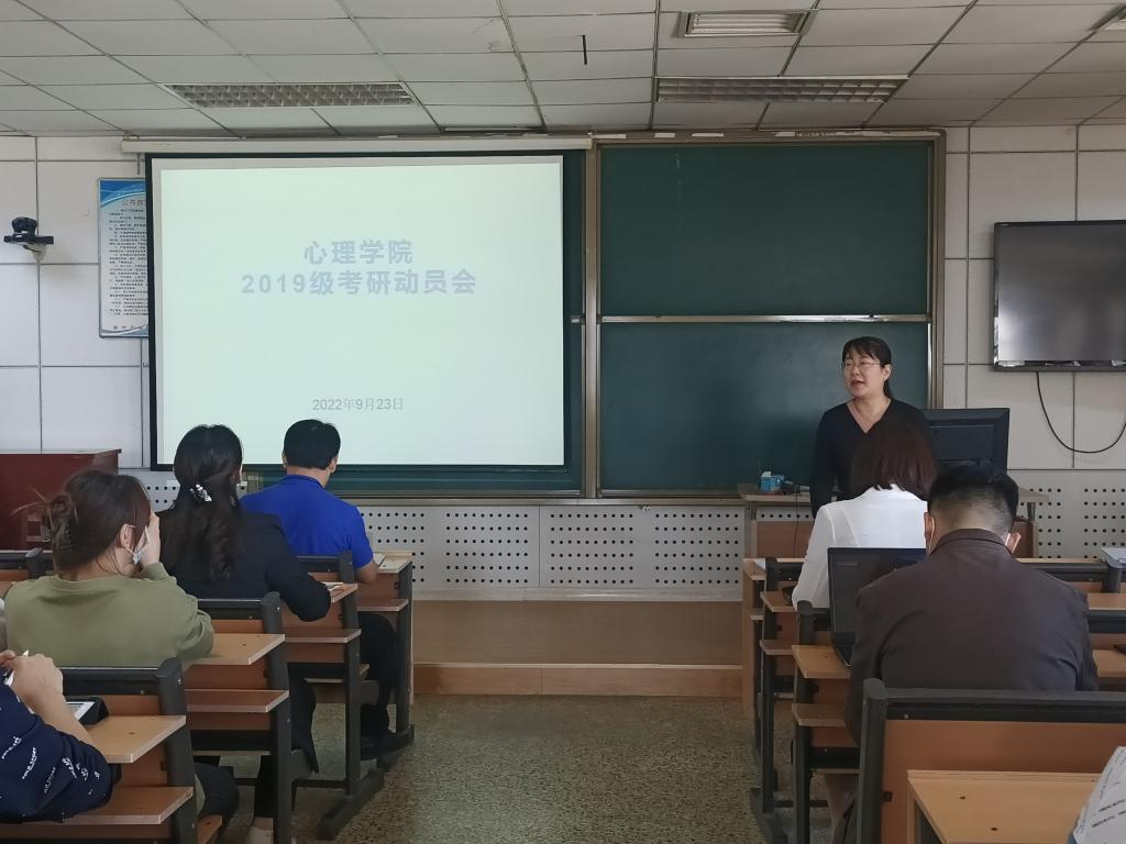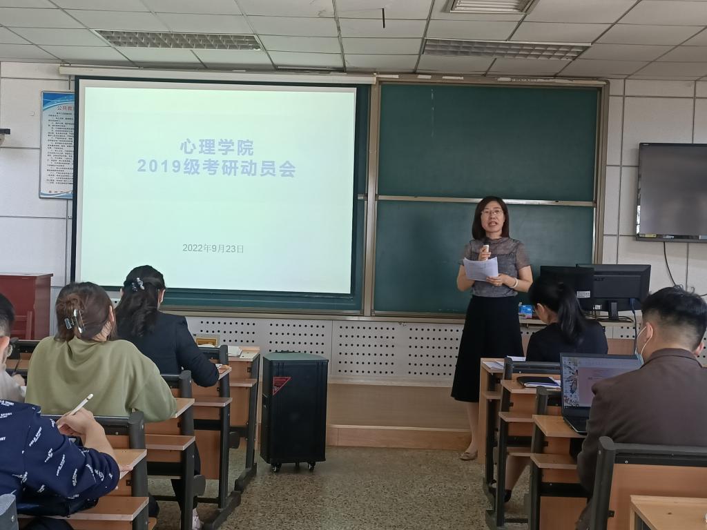 2019级考研动员会在院楼415室顺利召开。出席本次会议的有院长何文广,副院长李海青、王晓明,副教授刘春雷、杨庆,辅导员薛翠、贺现网以及2019级全体学生。会议由副院长李海青主持。