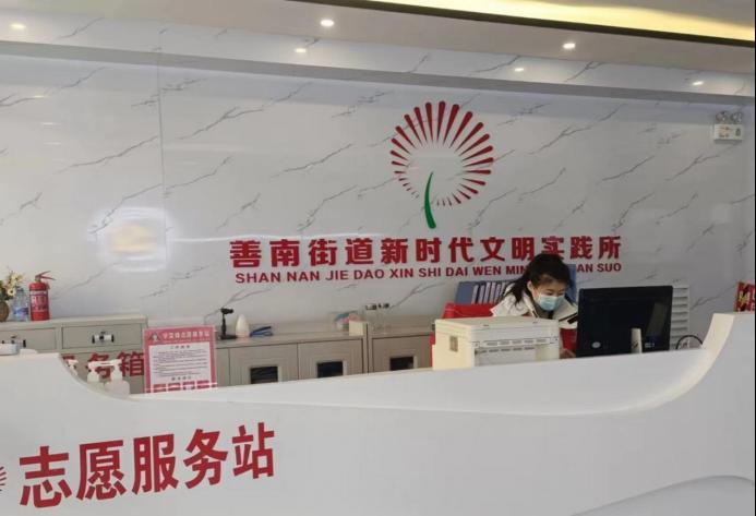 居委会作为基层群众自治组织,是党和政府联系社区居民群众的桥梁和纽带,维护着社区居民的利益。通过社区工作人员的介绍,实践队员了解到社区支委和居委会当前的主要工作为各级政策的上传下达、各种惠民便民活动的通知及开展、疫情防控和文明城市创建等。实践队员跟随工作人员的脚步来到善南街道新时代文明实践所,参观了志愿者服务站、图书室、理论宣讲室等多个功能区。