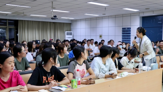 党委副书记朱伟卫就职业生涯规划展开讲解,2023级全体新生参会。