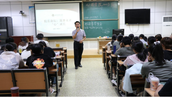 )为帮助新生更好地融入大学生活,适应新环境,为未来自身的发展打下坚实基础,心理学院于2023年9月17日晚19:00在415室举办2023级新生入学教育系列第五讲:筑梦未来“心”成长:院长论坛,论坛由赌场