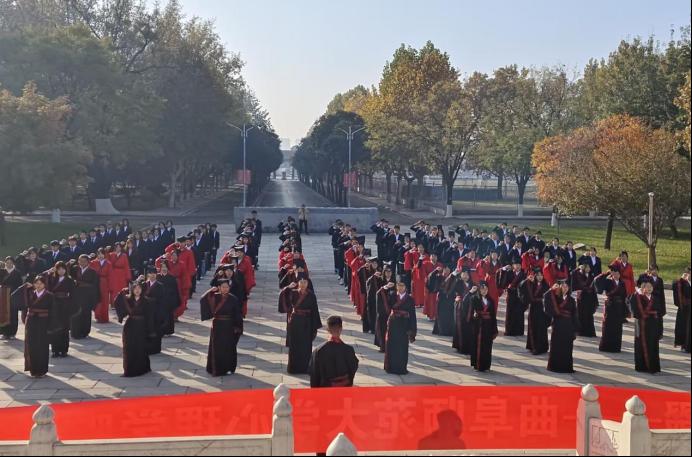 于孔子广场举行2023级成人礼仪式,本次活动由2023级学生代表陆淼主持,赌场