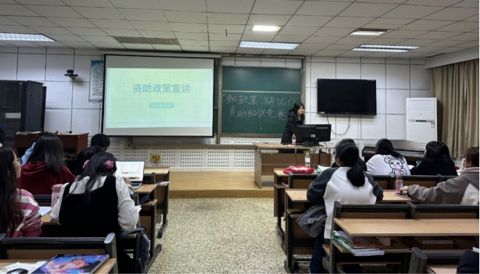 宣讲活动伊始,韩嘉睿就国家和地方的主要资助政策进行深入解读,讲解国家主要资助政策,即国家奖学金、国家励志奖学金、国家助学金、国家助学贷款、服兵役高等学校学生国家教育资助。对其申请时间、申请流程、资助对象、资助标准、申请条件等进行宣讲。同时对其申请时间、申请条件、申请流程等进行介绍。介绍家庭经济困难学生认定工作以及其所需要的材料,为有需要的同学提供清晰的政策要求和申请条件。活动最后,主讲人韩嘉睿鼓励同学们就有关问题进行提问,并进行了细致地解答。确保了每一位同学都对不同的资助政策有了相应的了解。