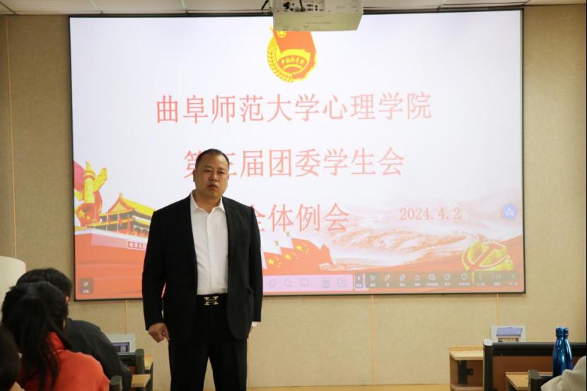 随后,赵旭涛表示,随着学雷锋系列活动的开展,今年团委学生会的春季工作正式开始,学生会各成员要积极主动承担更多的责任,以保证各项工作的顺利推进。此外,他对校运动会工作进行了简单的部署,并强调要借助此次组织春季运动会的机会进一步提升团委学生会的凝聚力。要高度重视挑战杯、互联网+以及科技创新大赛和职业规划大赛,希望同学们能够充分发挥心理学的专业优势,切实把握心理学学科的创新点,在各类竞赛上创造心院品牌。同时激励在座的学生干部积极参与主持,充分发挥学生干台的带头作用,引领项目取得新奕破。