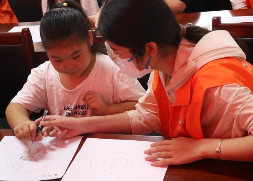 图4 实践队员辅导儿童绘制人际交往年轮图