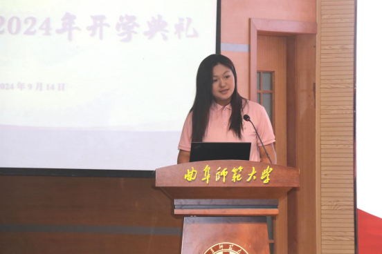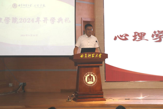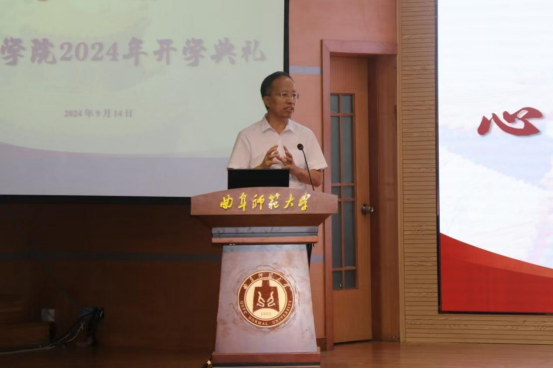 大家庭表示热烈欢迎。他勉励同学们在步入大学这一崭新篇章的同时要一如既往地奋力前行,积极学习并扎实系统掌握专业知识,同时颐养心性、塑造个性,练就过硬本领,成为国家富强、民族复兴的栋梁。他提出在求知识、做学问的同时,利用各类优秀平台实现自身的提升与全面发展。最后他衷心祝愿同学们将至的大学时光能成为其一生的“立命之本,奋斗之基”,能够在这所“浸润圣人之道,充盈光影书声”的神殿生活开心、学有所成。