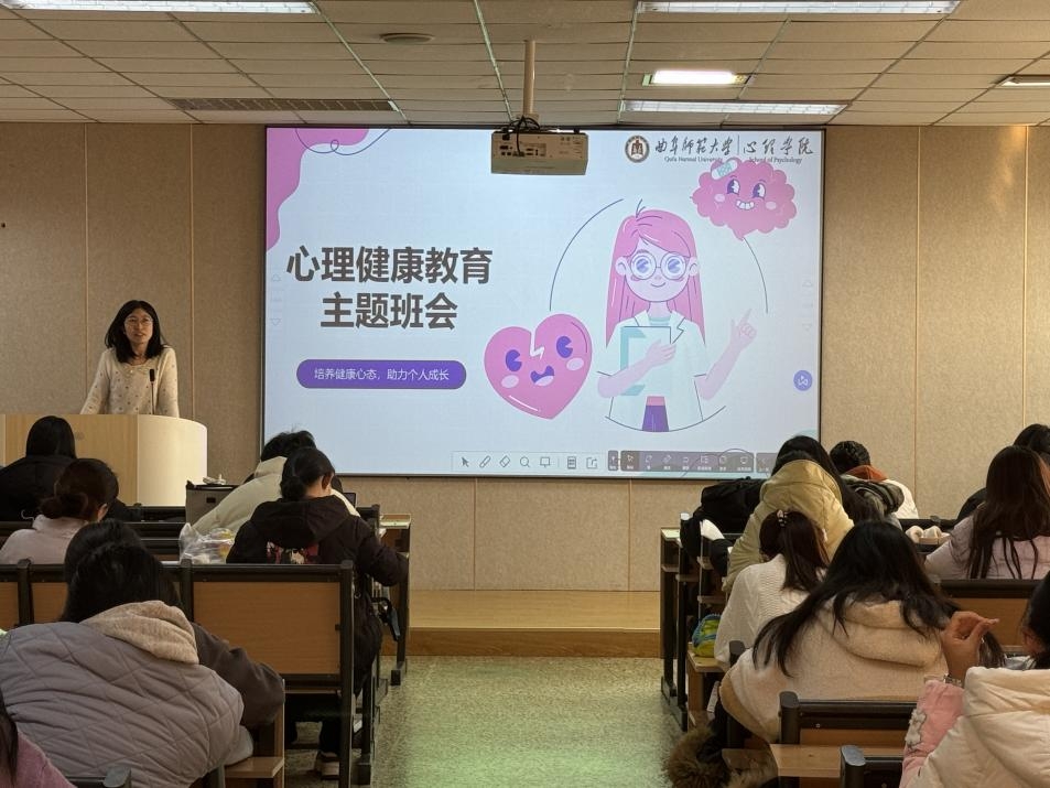24级本科生开展了心理教育主题班会,班会由辅导员吕超主持,心理学(师范)班心理委员姜佳妤主讲,公费师范生班心理委员王茜对心理健康培训内容进行了讲解补充。