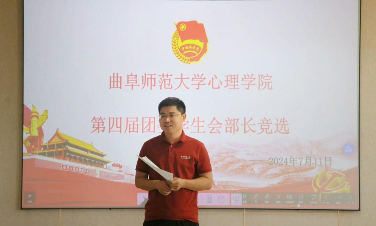 于415室召开第四届团委学生会主席团、部长竞选大会。心理学院党委副书记、2021级辅导员朱伟卫,团委书记、2023级辅导员贺现网,2022级辅导员钱虹、学生会学生干部代表出席会议。本次会议由秘书处副秘书长李柯妤、张欣主持。