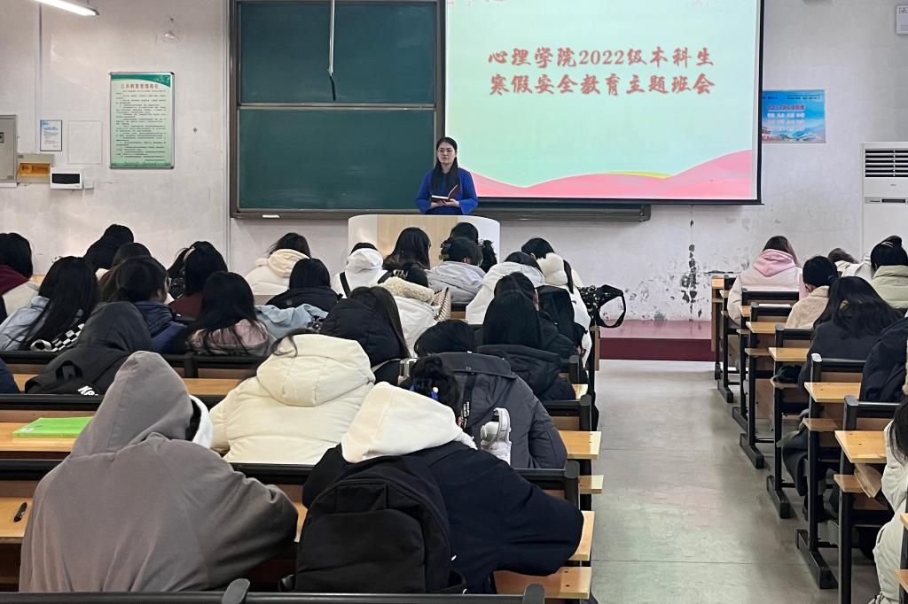 组织开展了寒假安全教育主题班会,学院党委副书记、2021级辅导员朱伟卫,团委书记、2023级辅导员贺现网,2022级辅导员钱虹和2024级辅导员吕超分别结合各年级实际情况召开主题班会。