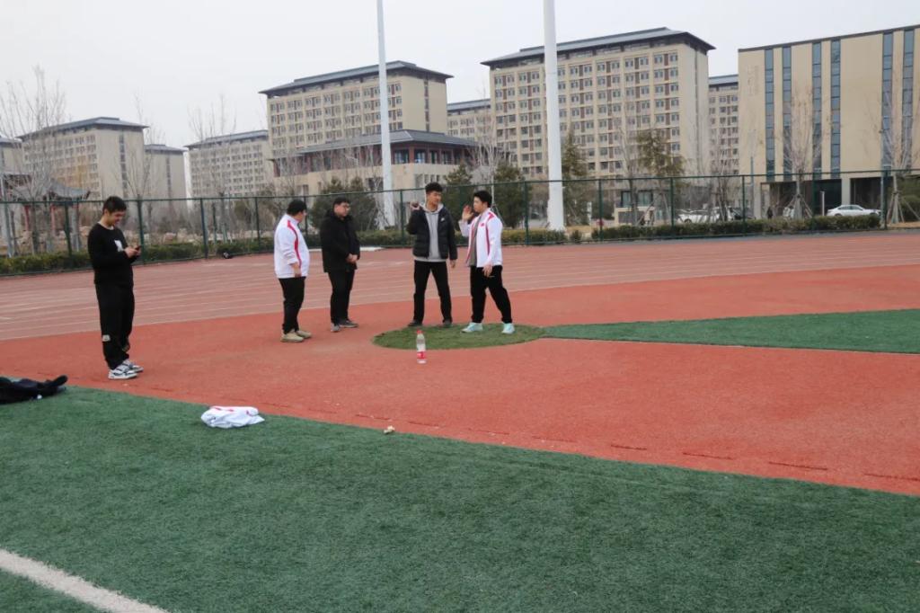 运动经理王润泽和教练丁翊志带领两位助教为运动员们详细讲解了春季运动会的项目,并针对每一位运动员的特点将其分为跑步组、跳高组以及铅球组三组。随后,教练带领运动员进行热身活动,面向铅球组讲解了投掷技巧并开展了相应的运动训练。