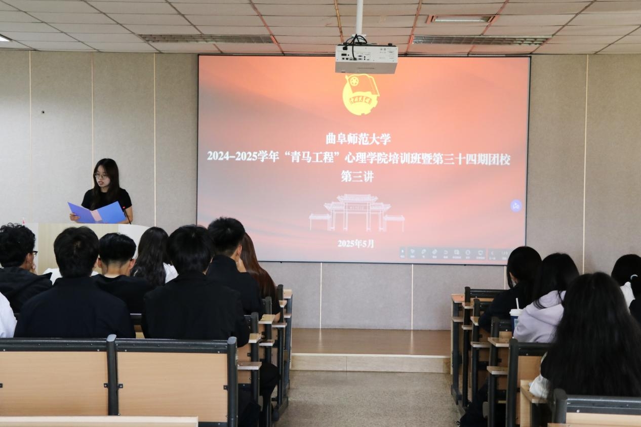 培训班暨第三十四期团校第三讲,培训的主题为“青春心向党 诵读新时代”读书分享会,学院团委副书记陈一诺主持,培训班全体学员参加。