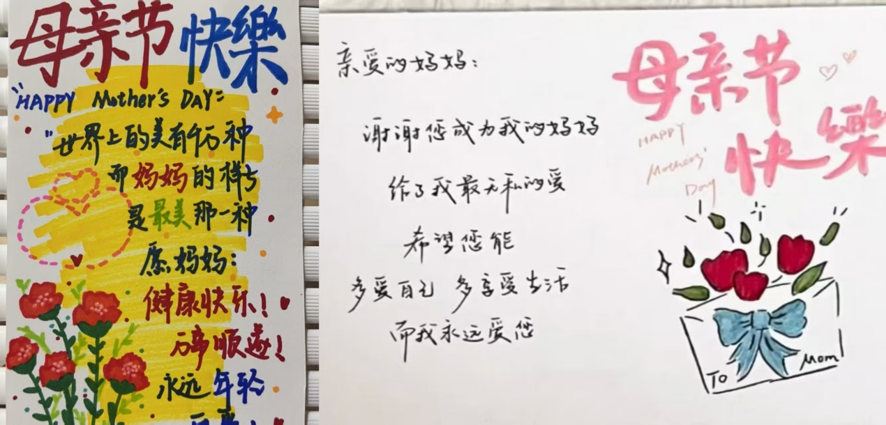 活动期间,同学们的热情空前高涨,纷纷参与其中,利用课余时间投心到贺卡制作中。大家充分发挥自己的创意,用丰富的想象力和创造力来制作精美的母亲节贺卡,同学们通过各种各样的元素,用自己的画笔,写下对妈妈们母亲节最真挚的祝福。这些贺卡饱含着同学们对母亲的深深祝福,承载着满满的爱与关怀,让同学们在一笔一画之间写下爱的重量。