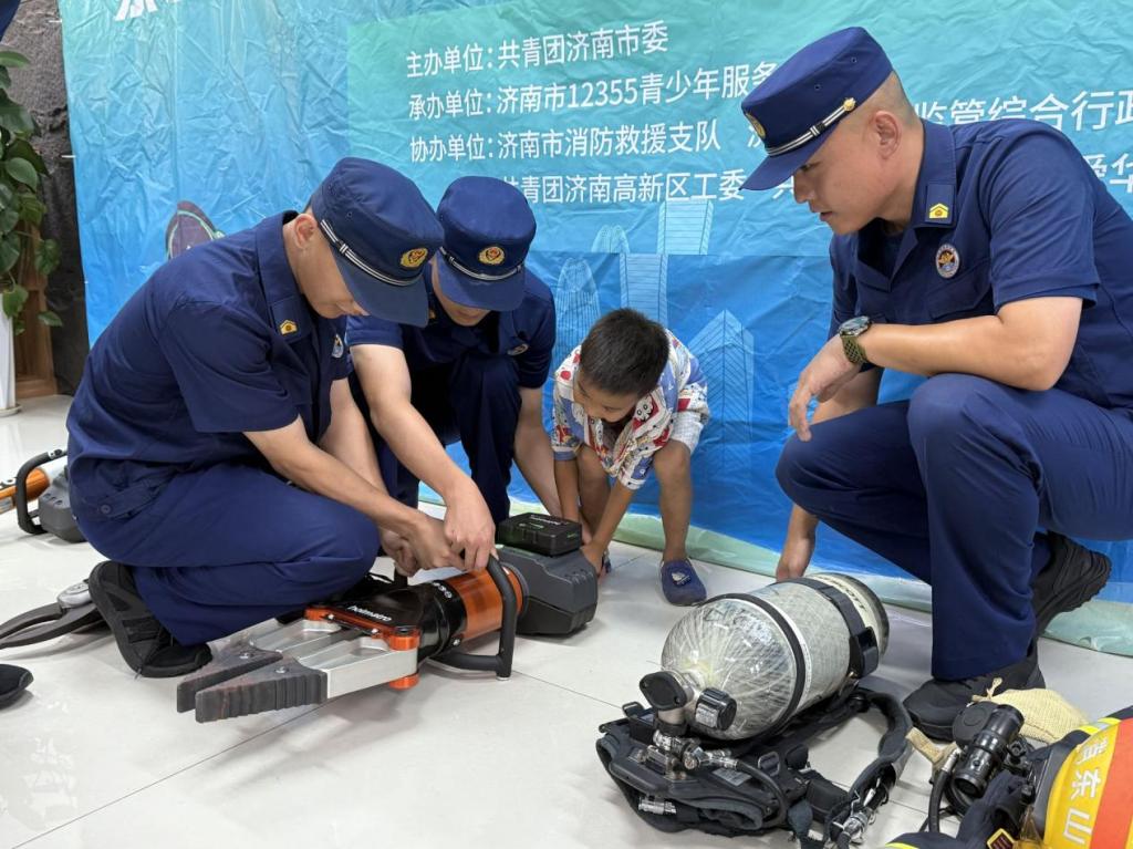 图3 济南市消防救援支队为孩子们介绍设备
