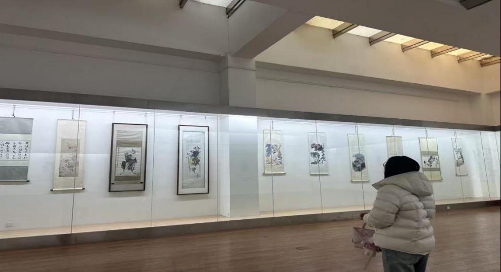 图2 实践队员正在参观李苦禅先生的书画真迹