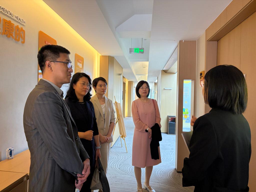 双方围绕人才供需对接、实习实践基地建设、产教融合项目开展、公益心理服务合作等核心议题进行了深入研讨。达成多项共识。一是建立人才定向输送机制,学院将根据两家机构的岗位需求,深化多领域协同合作,双方将在心理课程共建、公益项目联合开展、心理咨询师培养、科研成果转化等方面携手发力,推动心理学专业知识与社会服务、公益事业深度融合,推荐优秀毕业生投身心理学服务与公益事业,同时拓展学院社会服务半径,助力国民心理健康体系建设。走访期间,学院一行还实地参观了全民幸福社线下体验中心、秋文公益基金会项目展示区,详细了解机构运营模式、服务流程、项目开展细节及人才工作现状,进一步精准掌握岗位需求特点,为后续精准对接、定向培养奠定了坚实基础。