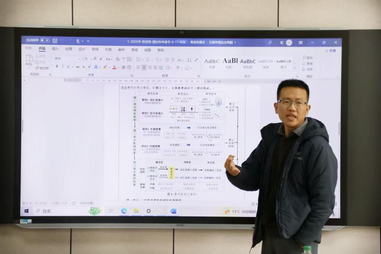论证会上,冯攀副教授凭借其深厚的学术造诣和丰富的评审经验,对申报项目书进行了系统性指导。他重点围绕选题价值、研究内容和学术创新三个维度,从项目选题的前沿性、研究设计的科学性、文本撰写的规范性等方面,为每位教师提供了极具针对性的修改建议。冯攀老师特别强调,国家社科基金项目申报要立足国家重大战略需求,注重学术积累与创新突破的有机结合。他建议老师们既要深耕自身研究领域,又要及时把握学科发展动态,构建系统化的研究体系。