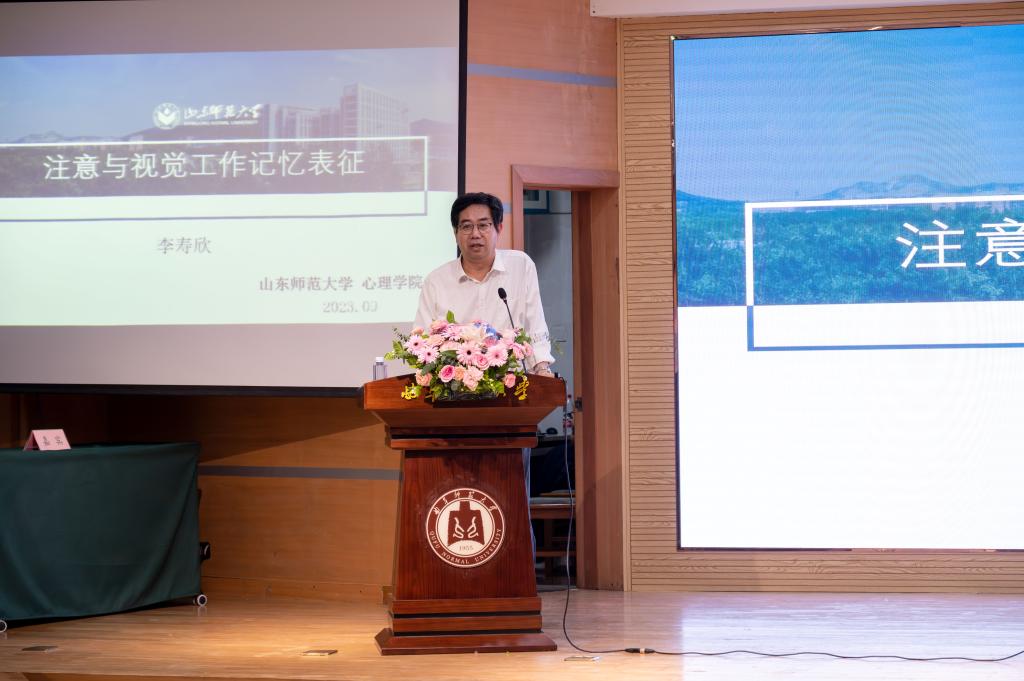 随后,李寿欣教授以《注意与视觉工作记忆表征的关系》为题,介绍了其团队围绕工作记忆特别是其中的视觉空间模板与注意的关系,展开的系列研究。他们发现在编码阶段,视觉工作记忆负载主要通过占用知觉资源降低干扰效应;而在保持阶段,视觉工作记忆精度负载和容量负载在工作记忆表征过程中产生不同的神经活动,导致投入到注意选择的认知控制资源发生变化。