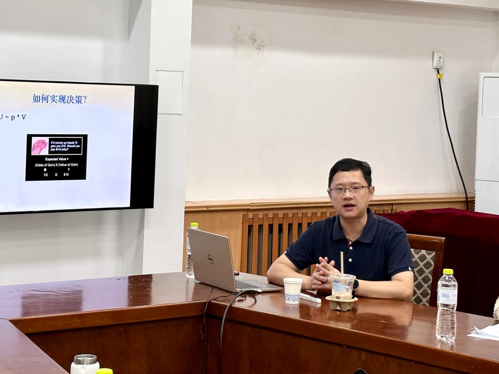 报告伊始,何清华教授简单介绍了决策的定义,并通过几个生活实例说明了决策的重要性。随后,何清华教授介绍了几项决策脑机制研究,从整体脑机制水平和个体差异角度,阐述了脑特定功能区与决策的关系。他指出VMPFC在决策中起着重要的作用,HD-tDCS以及助推可以有效干预决策。关于项目申报,何教授结合自身经验及申报案例,对国家自然科学基金的申报程序、评审程序、筛选标准等进行了介绍。报告结束后,何清华教授与在场的师生进行了互动交流。
