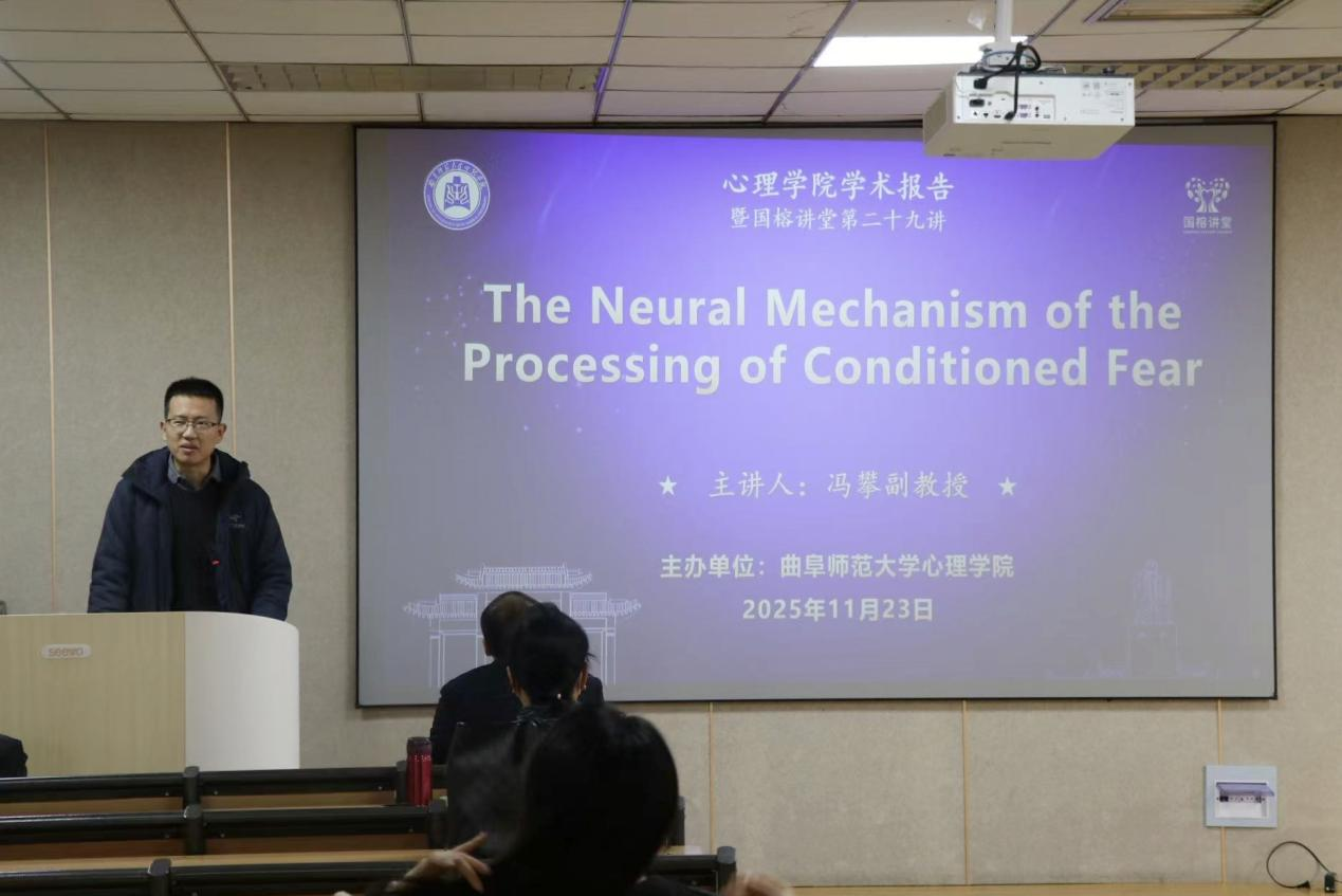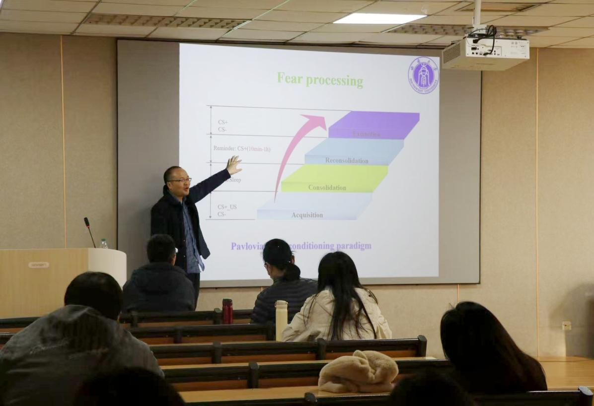 特邀西南大学心理学部冯攀副教授进行了一场题为“The Neural Mechanism of the Processing of Conditioned Fear”的学术讲座。本次讲座吸引了众多师生到场聆听,现场学术氛围浓厚。讲座由赌场