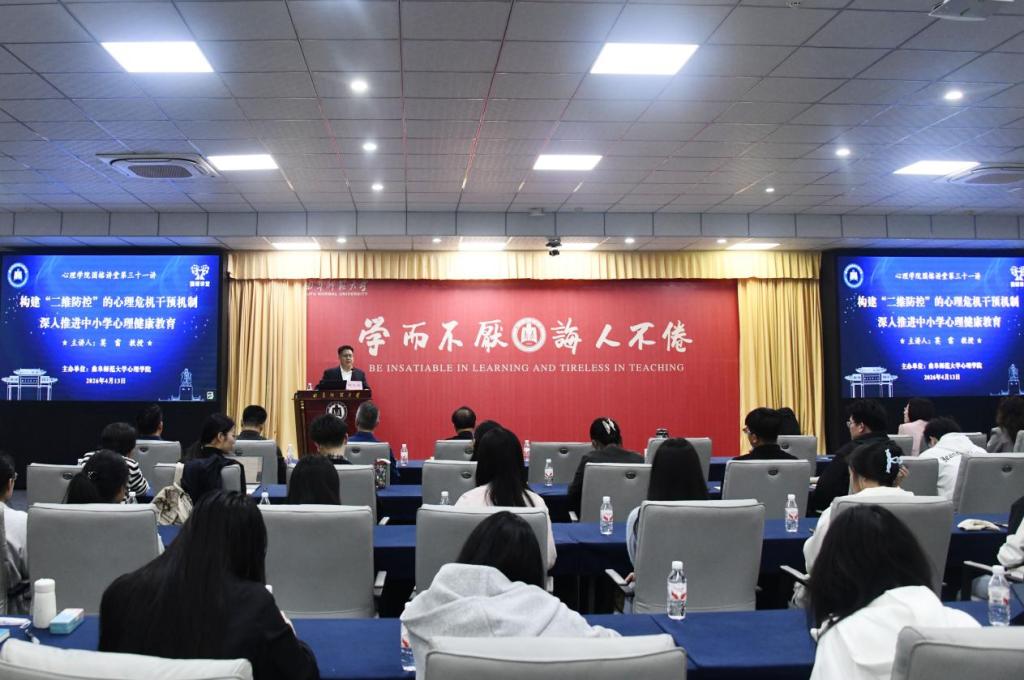 报告结束后,胡凡刚副校长作总结发言。他表示,莫雷教授的报告站位高远、视野宏阔,既有深厚的理论积淀,又有鲜活的实践案例,对推进学校心理健康教育工作具有重要的指导意义。随后进入互动环节,与会师生就心理危机预警系统的落地实施、“二维防控”模式在中小学的实际操作路径等问题,与莫雷教授进行了深入的交流与探讨。最后,胡凡刚副校长对莫雷教授的精彩报告再次表示感谢,并宣布报告会圆满结束。