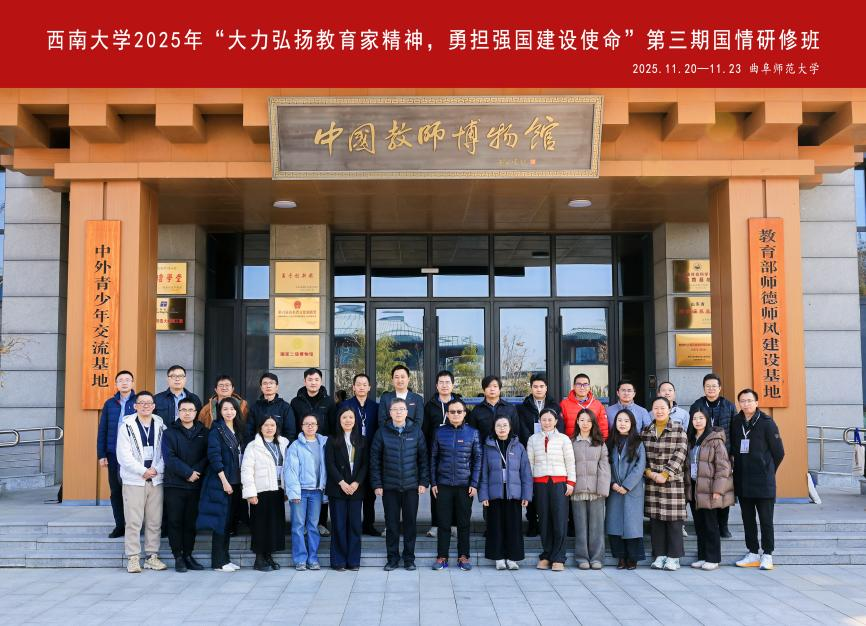 于2025年11月20日至23日承办西南大学2025年“大力弘扬教育家精神,勇担强国建设使命”第三期国情研修,研修班在曲阜进行了为期四天的沉浸式学习与文化交流活动。