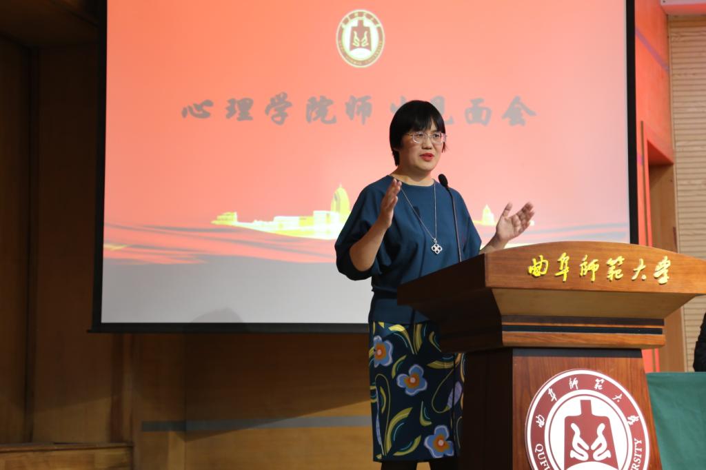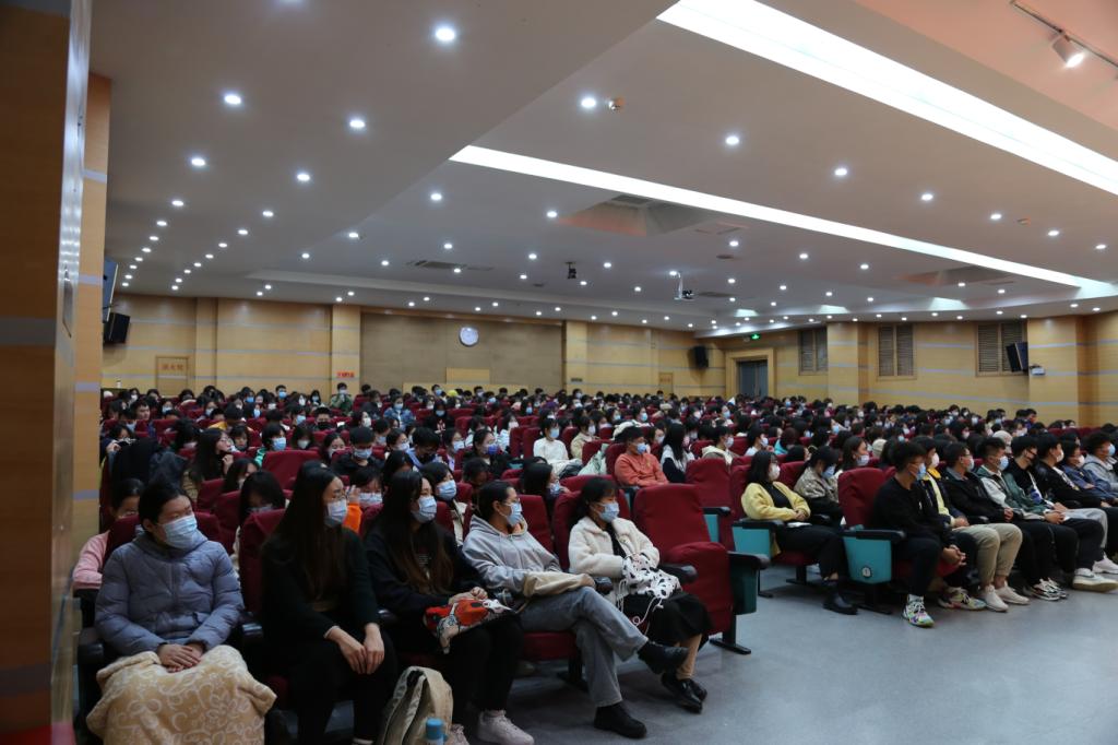 会议开始之前,由张雯老师指导全体同学学习手势舞《相亲相爱一家人》,调动现场气氛,让同学们释放身心、舒缓情绪,更加专注于之后的会议。
