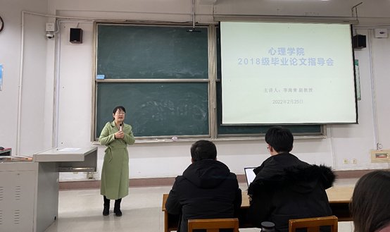 首先,李海青讲述了教务处对本科论文的管理程序,指出同学们要对毕业论文有规划,明确各个时间段需要做的事情;其次,根据教育部下达的《本科毕业论文(设计)抽检通知》,李海青就封面、字体、目录等方面指出毕业论文的具体要求;再次,李海青着重从标题、文中引用、文中用表、用图、参考文献这几方面对规范的APA格式进行讲解;最后,李海青就论文最后的致谢部分提出一定要求。