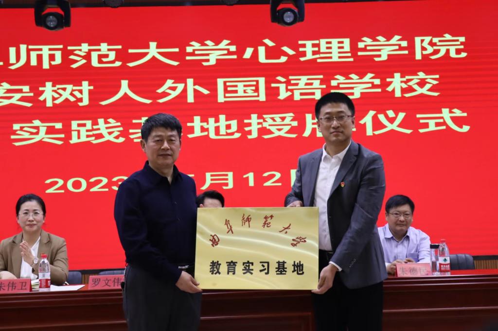 罗文伟为泰安树人外国语学校授牌,于明接牌。