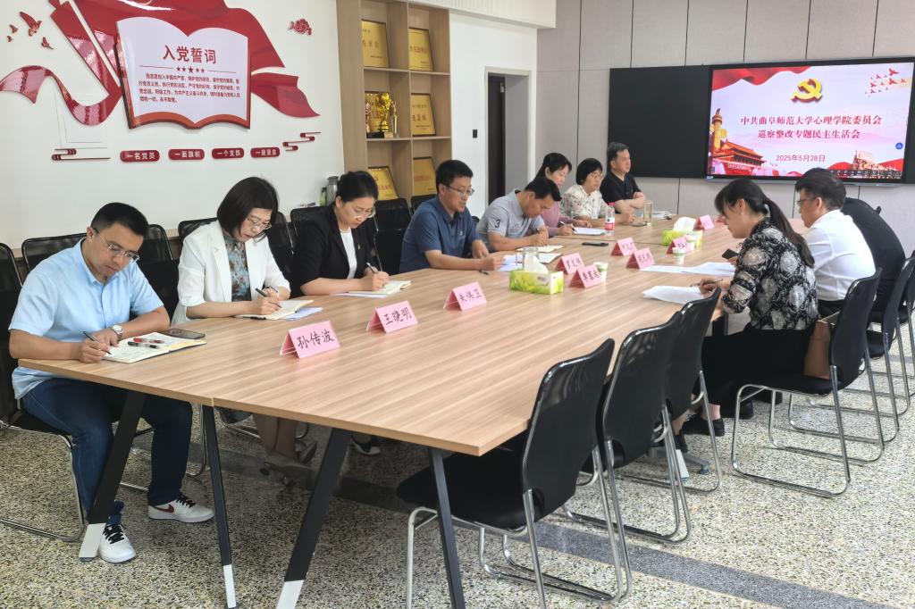 心理学院党委讯(通讯员:钱虹 摄影:钱虹)2025年5月28日下午,心理学院党委在310会议室召开巡察整改专题民主生活会,学校党委常委、副校长胡凡刚,组织部部长季塞南,纪委、监察专员办公室综合处副处长刘本成莅临督导,学院党委书记罗文伟、副书记朱伟卫,党委委员李海青、牛盾、孙传波出席会议,学院何文广、王晓明、孙俊才列席会议,会议由罗文伟主持。