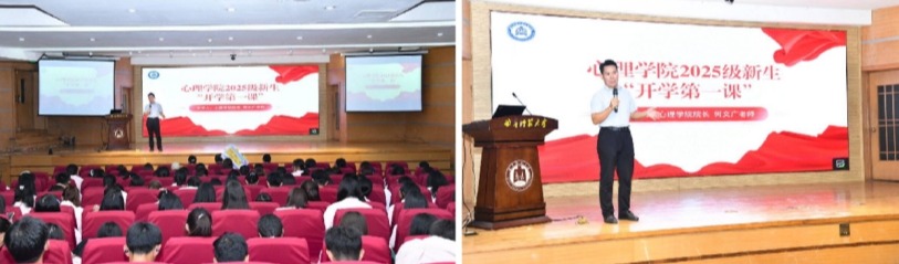 图1 心理学院院长何文广为2025级新生讲授“开学第一课”