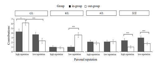 研究者共进行了2项研究4个实验。结果发现,在群际环境中,来自内外群体的个体声誉与群体声誉对群际合作的影响存在差异。个体声誉受到群体的约束,无法促进普遍合作,支持了有界广义互惠;群体声誉对群体间合作的影响不受到群体身份的限制,可以直接促进普遍合作,证明了无界间接互惠的观点。此外,研究还发现了两者心理机制上的差别,即威胁感知的中介作用。具体来说,个体声誉不会引起人们对于群体的威胁感。相比之下,群体声誉却更容易引发个体的威胁感,而这也可能正是群体声誉在嵌套社会困境之中能够发挥主导作用的重要原因之一。