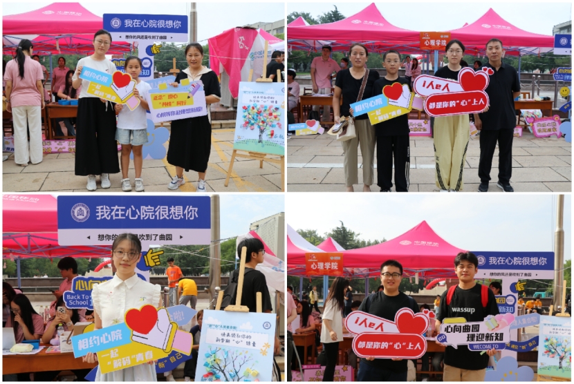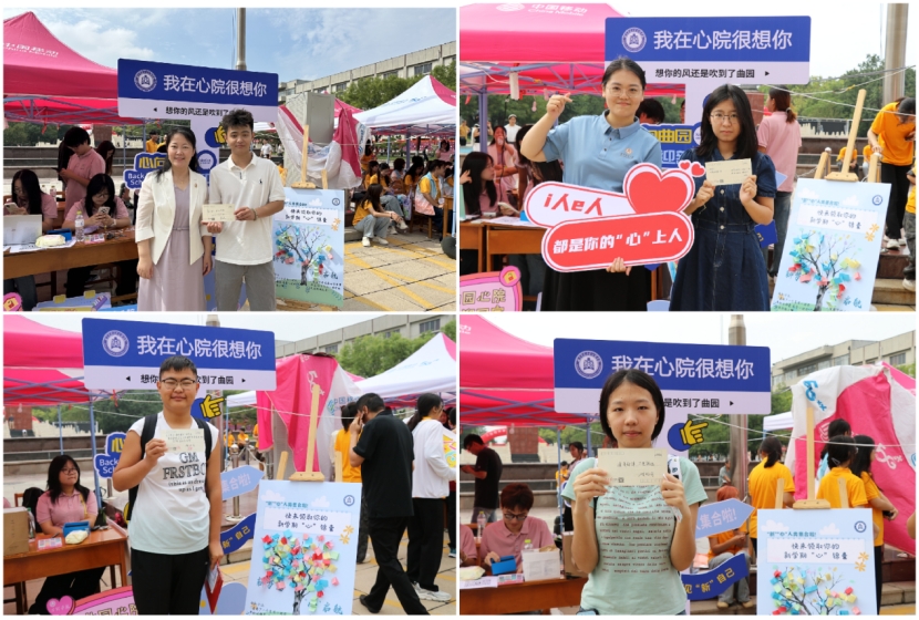 迎新现场,学院通过丰富多彩的创意活动,为新生定格入学记忆、传递温暖关怀。为此,“新学期‘心’锦囊”活动为新生设置了内含心理学小贴士的知识锦囊,答题正确可获得教师寄语,答错者则将锦囊暂时封存,待后续学习后再开启验收。完成答题后,新同学们会留下自己的指印,一张张带有印记的便签、一对对呈现心形的指印,汇聚成完整的“心”形树冠,既象征着新生与心理学院共同扎根、一同成长,也让大家在趣味互动中直观感受到学科魅力,承载着学院对他们探索心理学的美好期许。同时,学院设置了特色摄影区,并提供“我在心院很想你”“相约心院”“心向曲园”等特色手举牌。新生们在此拍照留念,通过具象化的场景强化“心院学子”的身份认同,将这一刻的温馨定格为大学归属感与集体记忆的起点,为崭新的大学生活镌刻下充满仪式感的开篇序章。